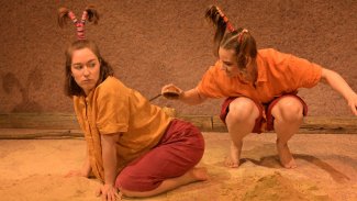 Rieseigroß und Kieselklein ist nach Geknitter-Gewitter die zweite Produktion des Theaters auf der Tromm für Kinder ab 3 Jahren. Mutig verlassen sich die beiden Schauspielerinnen auf das faszinierende Element Sand und verzaubern damit – auch, aber nicht nur! - die allerjüngsten Theaterbesucher:innen.